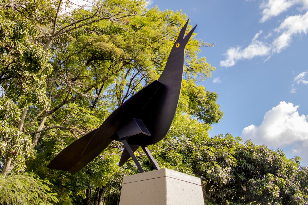 En el 2000, el maestro Enrique Grau Araújo le donó a la UdeA su Maríamulata, una obra que representa a una de las aves más representativas del Caribe colombiano. Foto: Dirección de Comunicaciones/ Alejandra Uribe F.