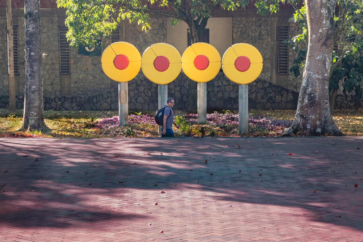 En el 2001, en el Teatro al Aire libre, se instalaron los Girasoles esculpidos en concreto por la artista Ana Mercedes Hoyos. Foto: Dirección de Comunicaciones/ Alejandra Uribe F.