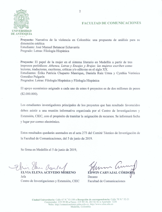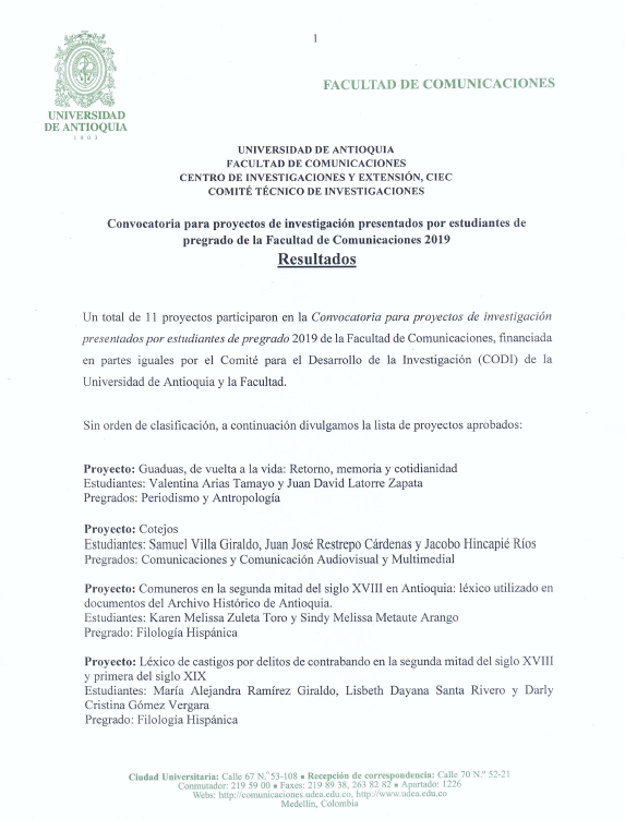 Resultados Convocatoria 2019 para proyectos de investigación de pregrado