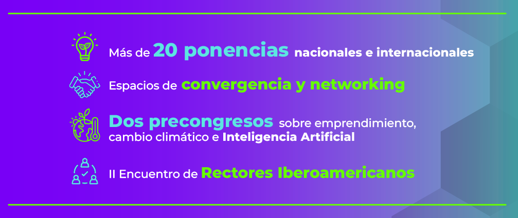 - Dos precongresos sobre emprendimiento, cambio climático e Inteligencia Artificial.