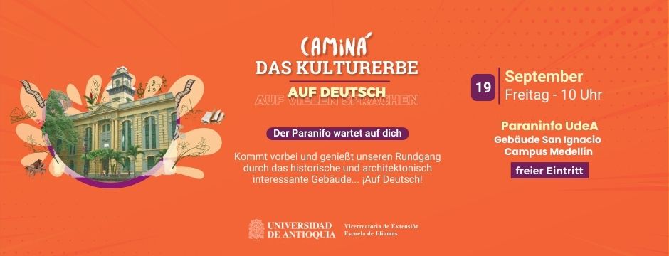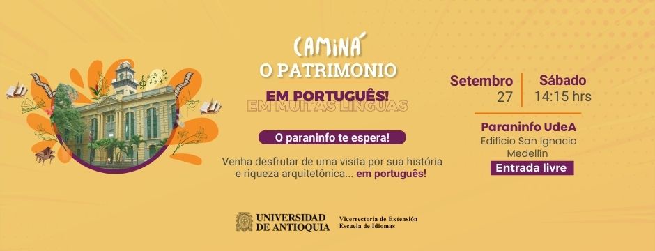 Las lenguas son el medio de expresión y comunicación de los diversos sistemas de pensamiento y un factor de identidad e integración entre los grupos humanos. Caminá el Patrimonio, ¡En muchas lenguas! es una estrategia de apropiación patrimonial que busca reivindicar la diversidad y riqueza de los idiomas en un viaje entrañable por la historia del Edificio San Ignacio. Los múltiples caminos que las lenguas nos proponen te acercarán a este lugar representativo y patrimonial del centro de Medellín, más conocido como el Paraninfo de la Universidad de Antioquia.