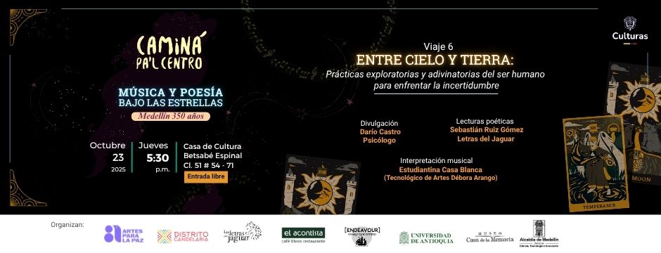 En el marco de la celebración de los 350 años de la ciudad de Medellín y con el liderazgo de la iniciativa ciudadana Caminá pa’l Centro, nace la estrategia Música y poesía bajo las estrellas, como un programa de actividades variadas abiertas al público.