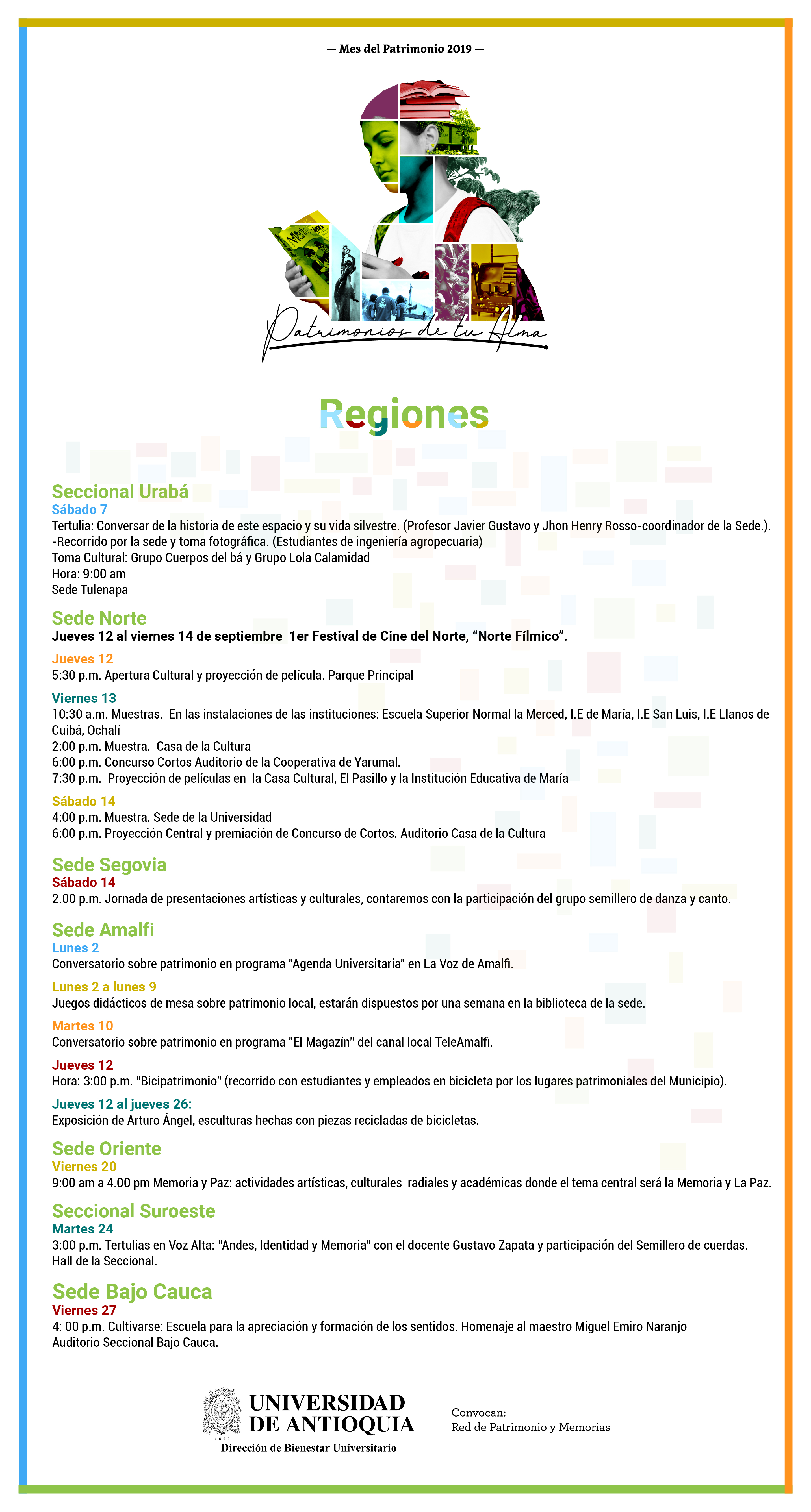 Consulta la programación en Regiones: Mes del patrimonio Regiones 2019