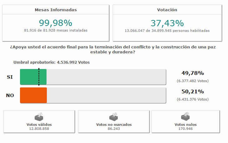Menos de 60 mil votos diferenciaron al No del Sí en el plebiscito del 2 de octubre. La cifra no solo indica, según Adrián Restrepo, investigador del Instituto de Estudios Políticos, que la democracia colombiana funcionó pues se respetaron las reglas del juego, sino que la cercanía del resultado es una muestra más de la polarización del país respecto a las negociaciones y el acuerdo firmado. “Con una diferencia tan mínima tampoco hubiera sido útil que ganara el sí”, agregó la abogada Bernardita Pérez.