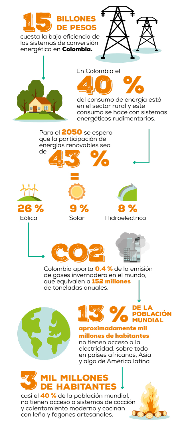 En Colombia el 97 % de la población tiene acceso a cobertura eléctrica. La academia y organizaciones internacionales cooperan en el avance de las llamadas «transiciones energéticas».