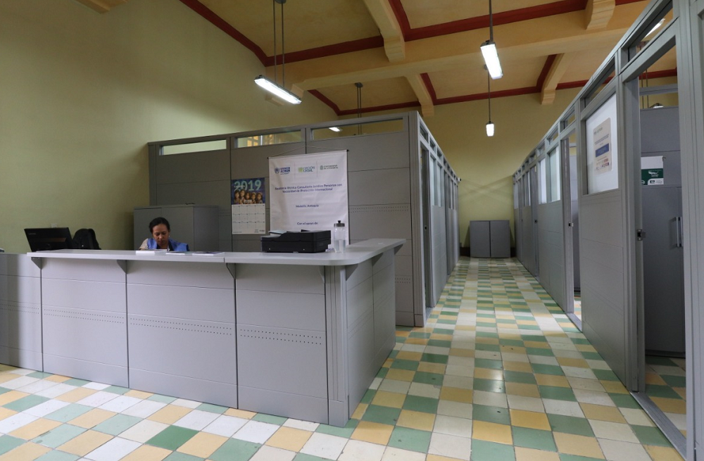 La distribución de esta oficina, ubicada en la Antigua Escuela de Derecho de la Universidad, permite asesorías individuales y mayor confidencialidad para la atención a los migrantes irregulares erradicados en el Valle de Aburrá y Antioquia, que acuden por asistencia legal.