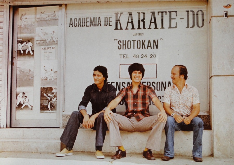 De derecha a izquierda, Sensei Álvaro Tovar, Sensei Iván Mayor Mejías y Sensei Jairo Blanco Botero, fundadores de la Liga Antioqueña de Karate Do. Fotografía tomada en la Calle 44 San Juan No 78 – 24 Academia de Karate Do La América. Imagen cortesía Dojo Budokan UdeA.