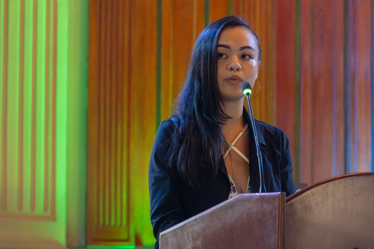 La estudiante Julieth Eugenia Mora Erazo durante su intervención en el Día Clásico. Foto: Alejandra Uribe Fernández/ Dirección de Comunicaciones.