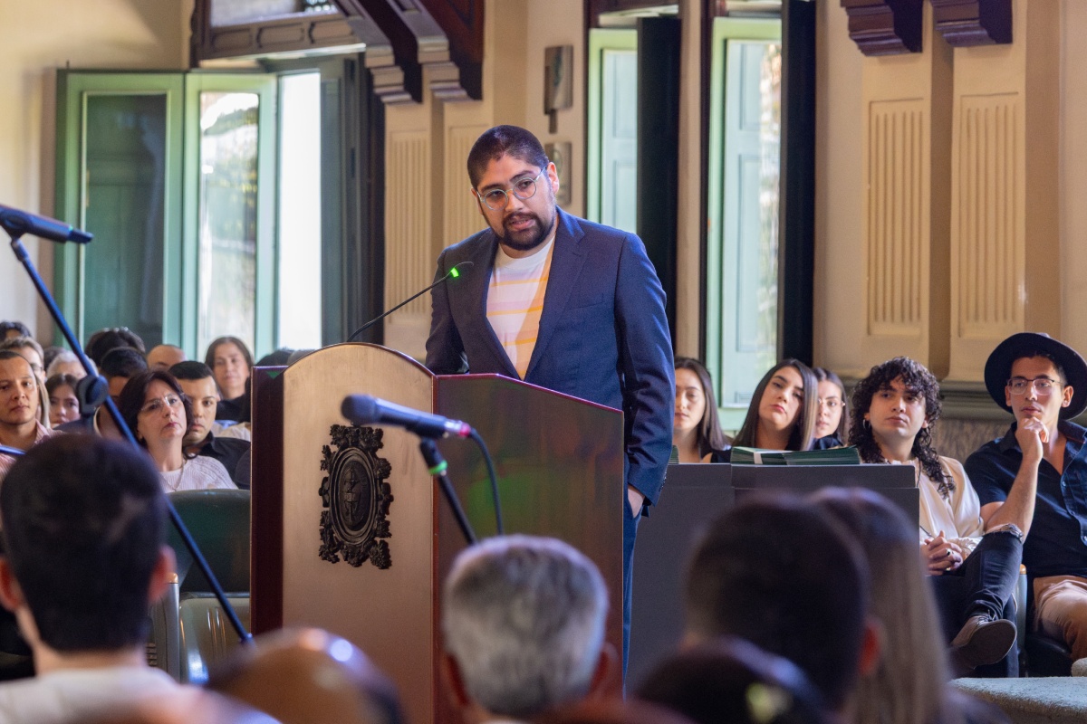 «Seguir pensando con paciencia y lucidez, con rigor y curiosidad», fue uno de los mensajes de Camilo Franco Muñoz. Foto: Alejandra Uribe Fernández/ Dirección de Comunicaciones.