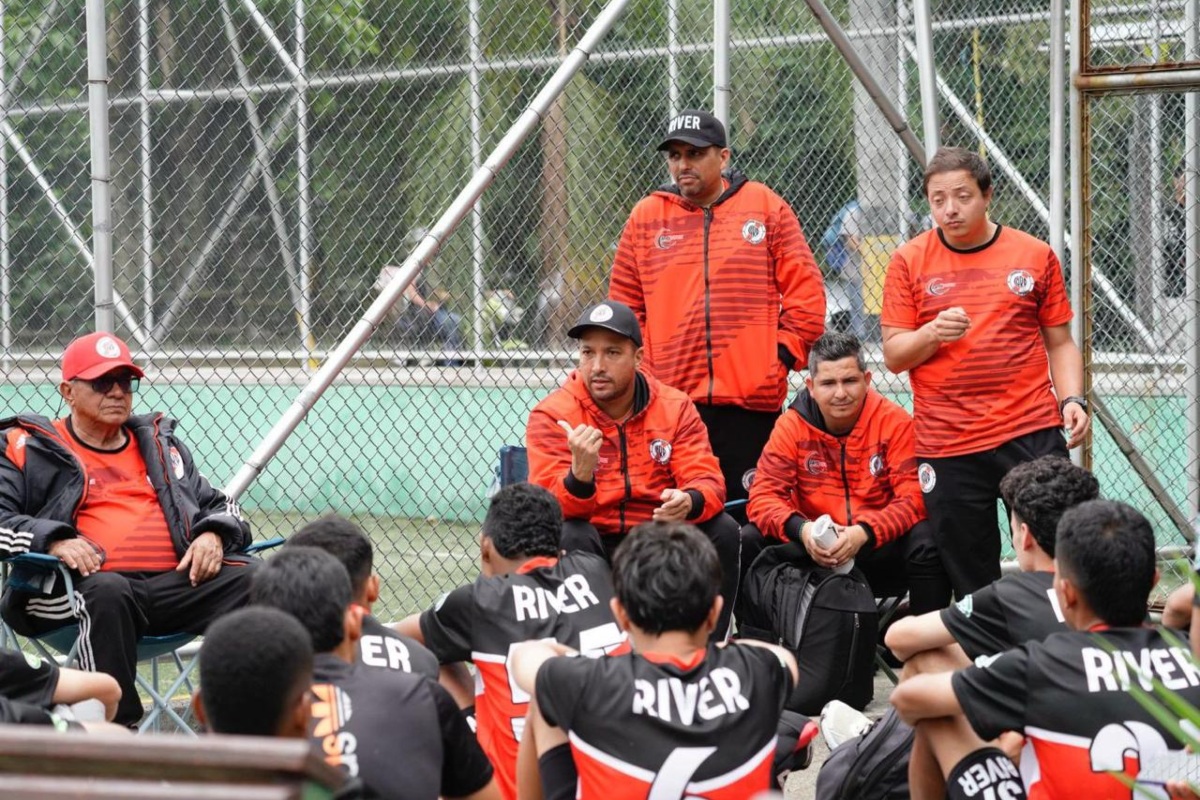 Al extremo derecho, Ricardo Urrea González, integrante del cuerpo técnico de la Corporación Deportiva River Plate Medellín. Foto: Cortesía