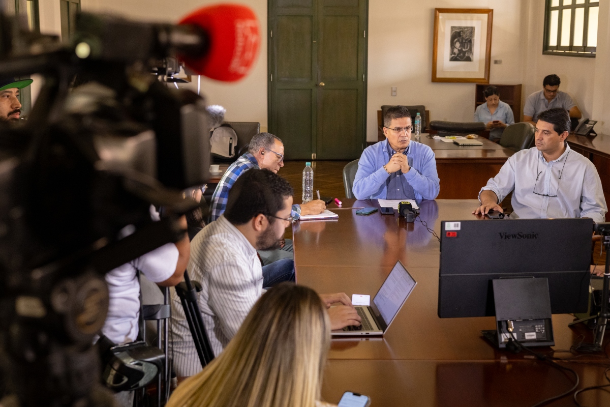 John Jairo Arboleda Céspedes, rector de la UdeA, se reunió con los periodistas para compartir la evolución y gestión de la situación financiera de la institución. Foto: Dirección de Comunicaciones UdeA / Alejandra Uribe F.
