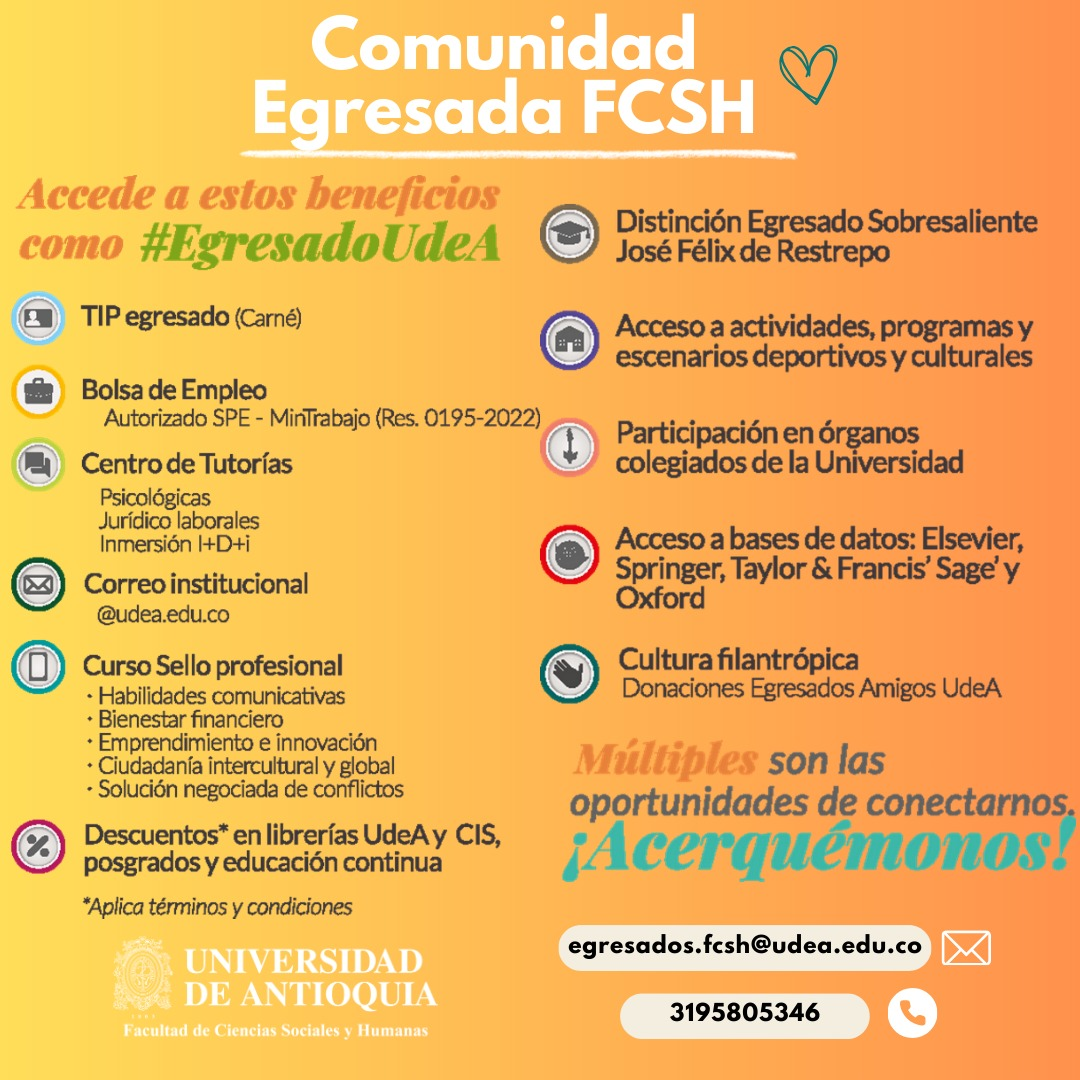 Los egresados y egresadas son un estamento fundamental para el eje de la extensión de la Universidad de Antioquia, por ello queremos aportar a sus procesos educativos y laborales. El programa busca contribuir a sus procesos de formación y capacitación con las siguientes herramientas.