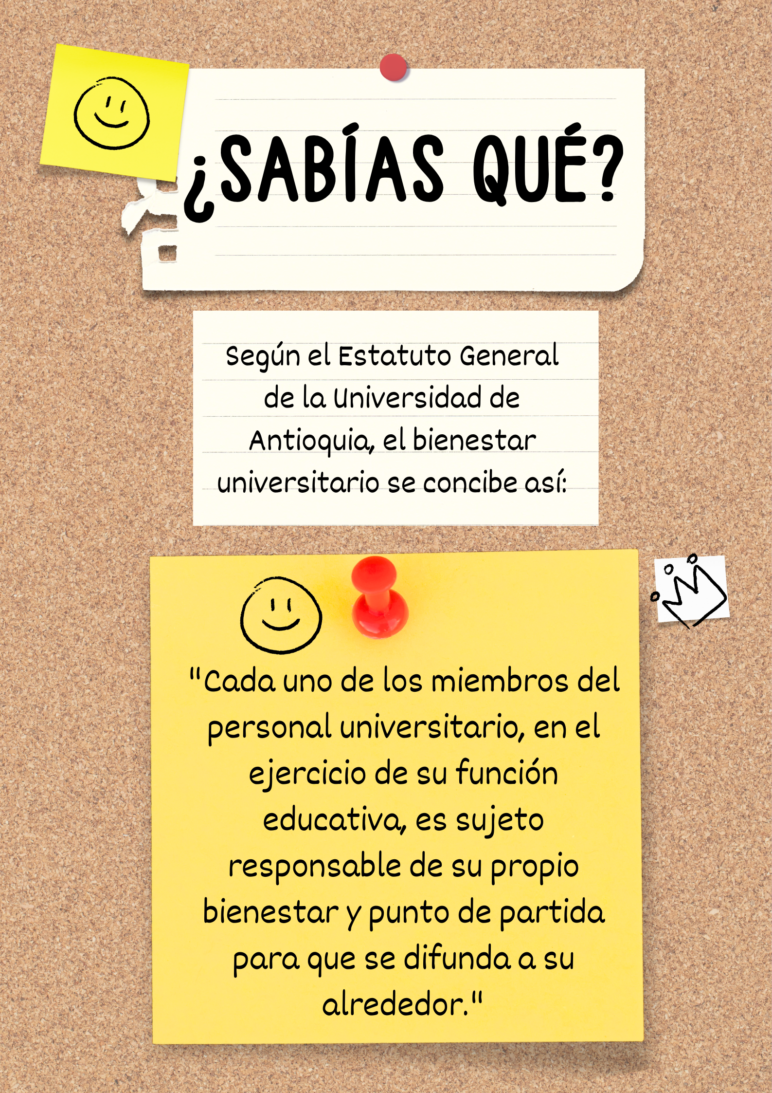 El Acuerdo Superior 173 del 2000 que expide el Sistema de Bienestar Universitario de la Universidad de Antioquia refiere como objetivo general: contribuir a la formación integral de las personas mediante la ejecución de programas que mejoren sus condiciones y generen procesos de cambio institucionales, colectivos e individuales, y que se integren en la vida académica, laboral y personal.
