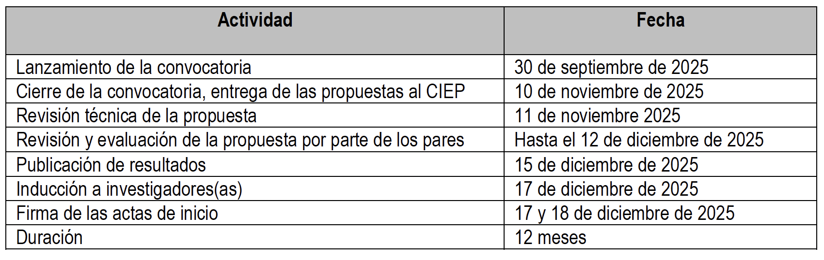 - Presentación de la Ficha técnica, el presupuesto y cronograma según los formatos establecidos por el CIEP.
