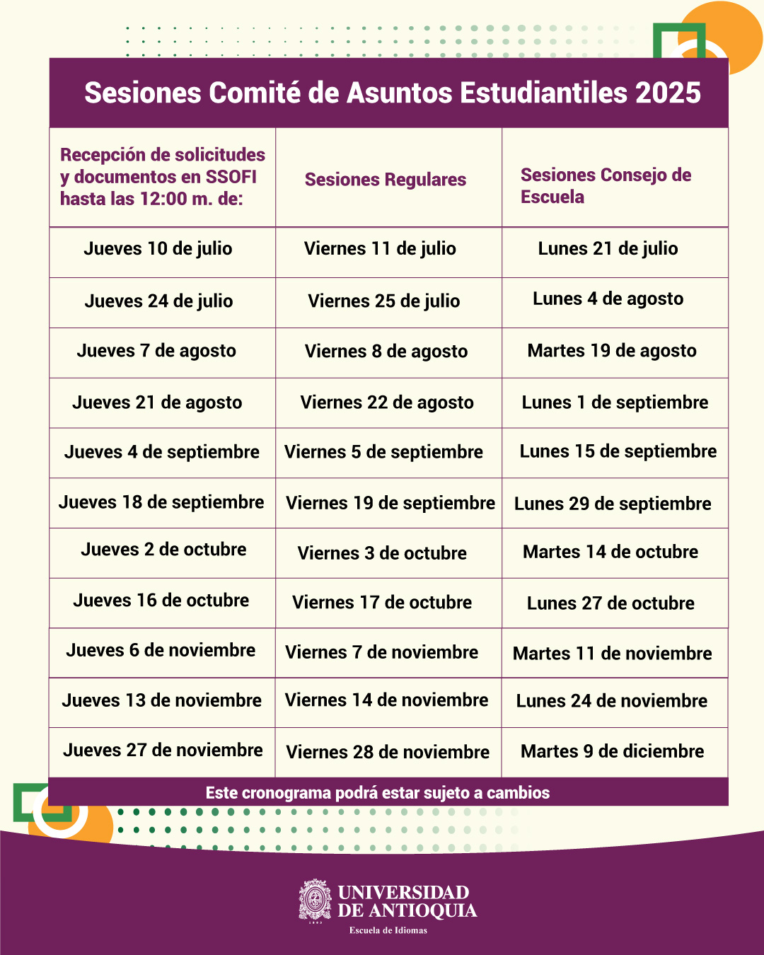 Calendario de sesiones 2025-2