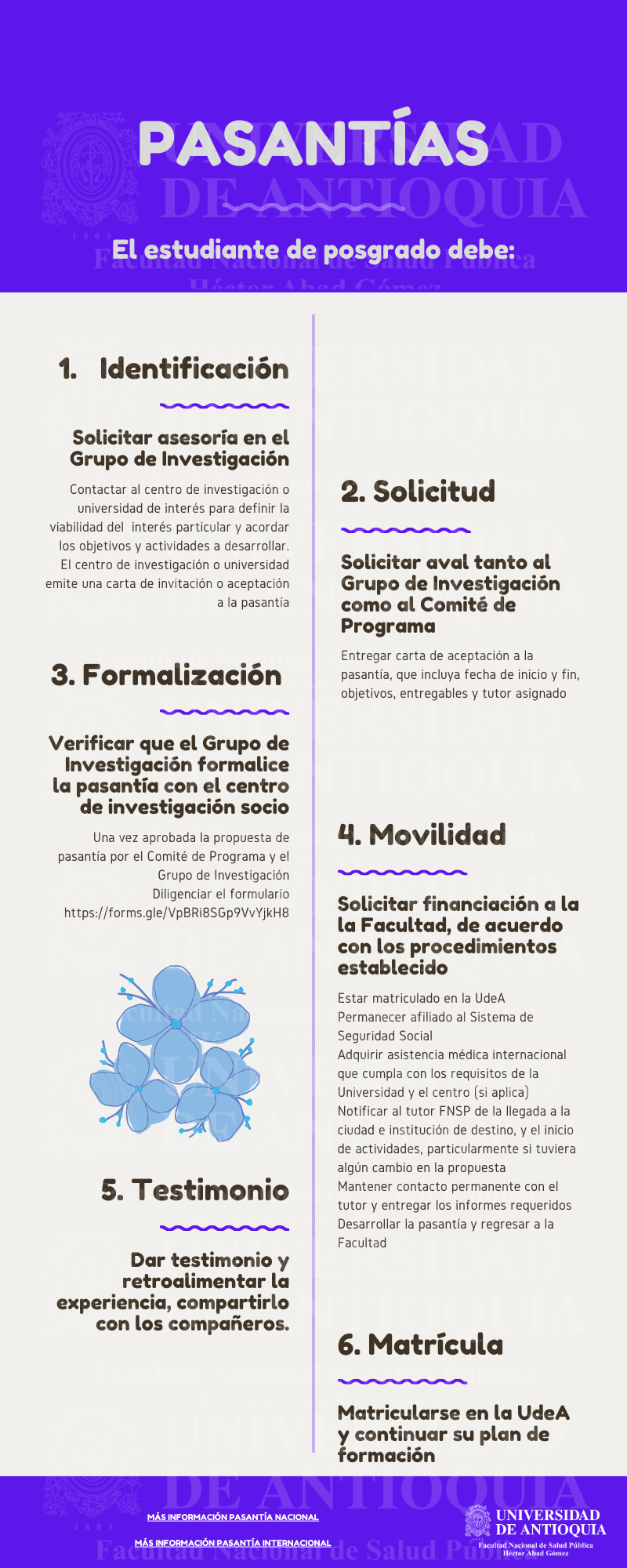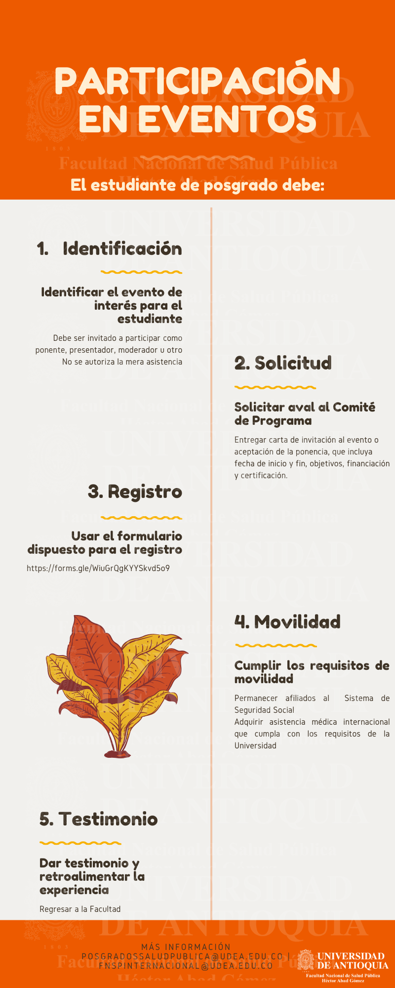 Correo electrónico: posgradossaludpublica@udea.edu.co | movilidadposgradosinter@udea.edu.co | fnspinternacional@udea.edu.co